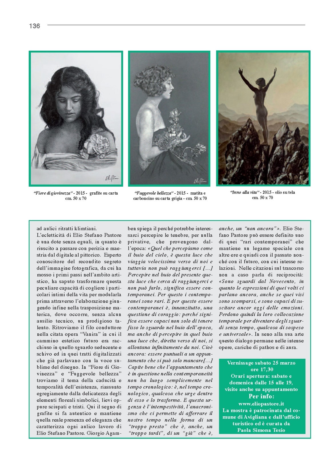 Sono intriganti e coinvolgenti le belle opere di Elio Pastore, che riesce a ritrarre la bellezza femminile infondendole grazia e sensualità, sempre con un tocco di raffinatezza, anche quando si tratta di nudi. Le immagini femminili di Pastore sono seducenti, interpretano i mille volti della femminilità e della poliedrica donna di oggi.